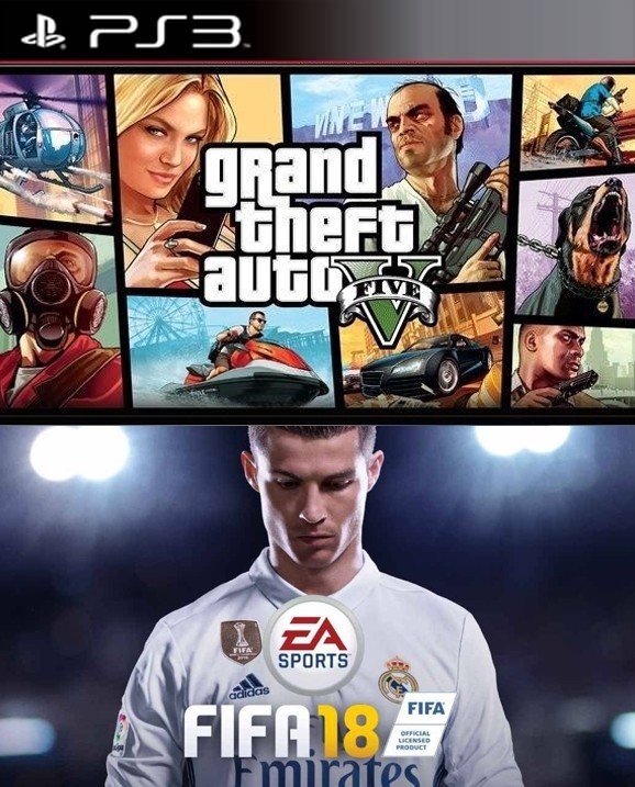 2 JUEGOS EN 1 FIFA 18 MAS GTA V Ps3