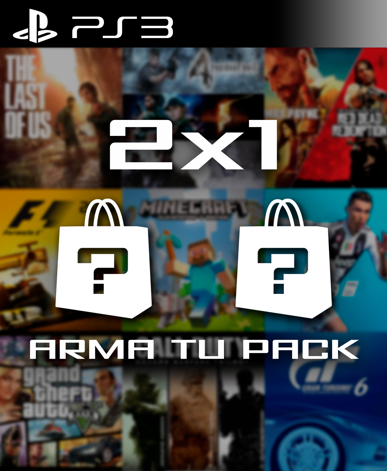 Al realizar la compra podrás escoger 2 juegos de PS3 de nuestro catálogo sin importar precio de diferencia que tengan entre ellos.